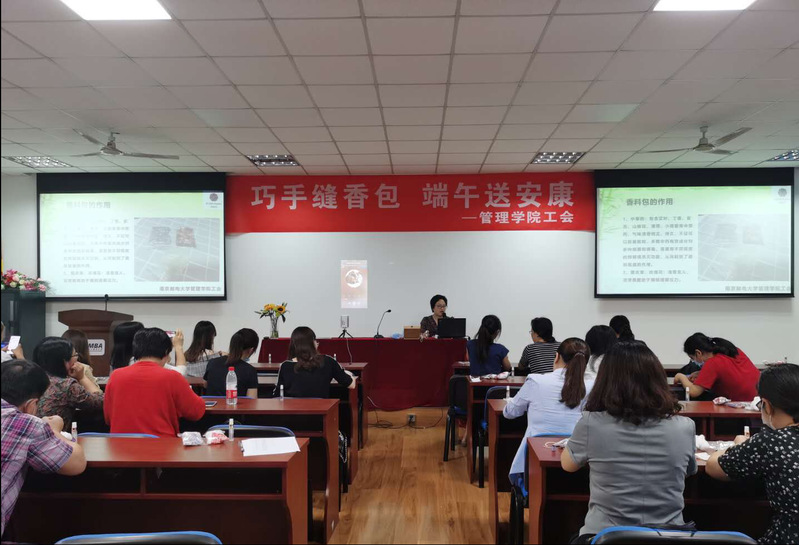 2020年6月22日下午,由管理学院工会策划组织的“巧手缝香包 端午送安康”主题活动在三牌楼校区MBA中心会议室举行,活动特邀校关工委副主任江森同志与学院青年教师欢聚一堂,共度美好时光。
