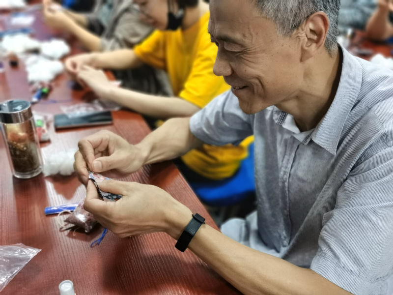 活动伊始,学院工会负责人表达了学院对教师们的节日祝福。香囊制作老师现场传授了中草药香包和纯植物精油驱蚊喷雾的做法和疗效,空气中弥漫着沁人心脾的香味。参与活动的老师一边仔细聆听,一边飞针走线,将对亲友的祝福与浓浓的传统文化缝进精巧的香包里。现场气氛热烈,不时传来欢声笑语,大家在轻松祥和的氛围中度过了愉快的时光。