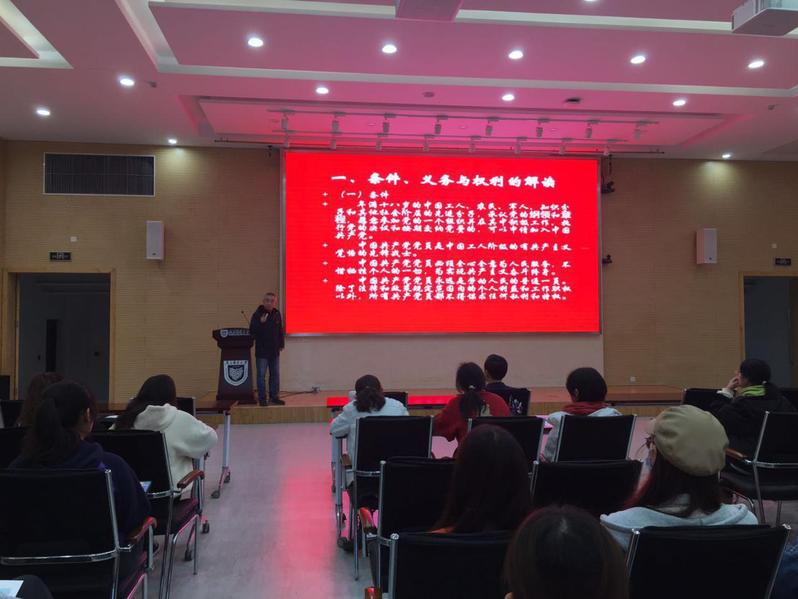 储成祥教授从新版党章中的党员条件切入,声情并茂地讲述了身边多位老党员的先进事迹,结合个人工作学习经历,教导积极分子们要努力在学习工作中提高自身修养,达到成为一名党员的必备条件,努力向优秀党员看齐。储成祥教授细致讲解了党员权利与义务的核心内涵,深刻分析了党员的义务与权利的关系,党员的义务与党员的权利在现实中是互为条件、相辅相成的,特别指出党员的义务与权利从动态上看是相互渗透,相互转化的。重点强调了党员在履行义务及行使权利时都具有鲜明的党性。