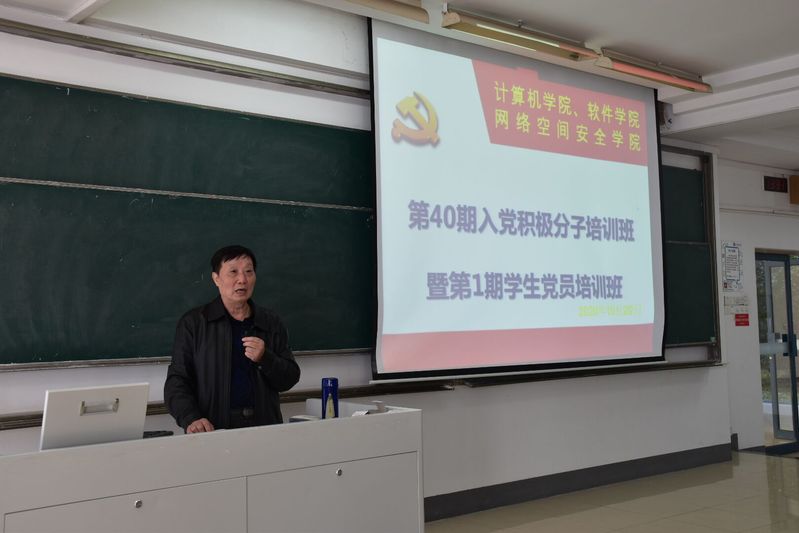 2020年11月4日,计算机学院、软件学院、网络空间安全学院党委举办第40期入党积极分子培训班暨第1期学生党员培训班专题党课,校关工委副秘书长张和明老师作题为《不忘初心,做新时代合格党员》的专题党课,全体学生党支部书记、学生党员和106名入党积极分子聆听了党课。