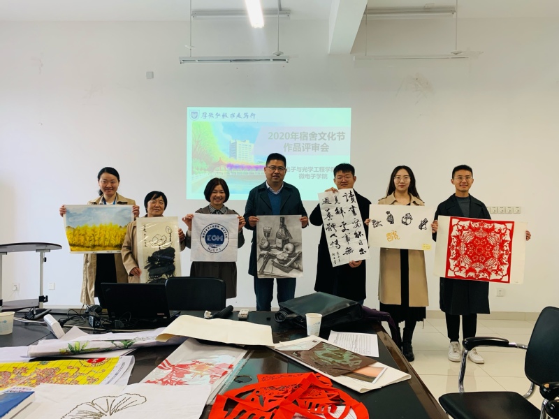 为进一步加强电子与光学工程学院、微电子学院宿舍文化建设,丰富学院学生宿舍文化生活,11月5日,学院开展了以“寓见青春 寓见你”为主题的宿舍文化节评比活动。学院党委副书记兼副院长高翔,学院关工委张慈萍、严卯生老师和学院辅导员共同参与了本次宿舍文化节作品的评选。