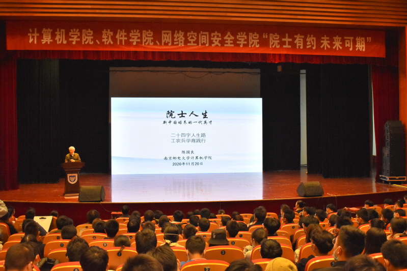 11月20日下午,计算机学院、软件学院、网络空间安全学院“院士有约,未来可期”分享会暨2020级本科生新生入党启蒙教育在青春剧场隆重举行。计算机学院关工委名誉主任陈国良院士为学院2020级本科新生开展了一场精彩纷呈的入党启蒙教育讲座。