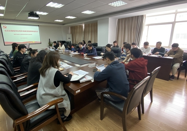 关工委倪静虹老师为与会人员作支部书记工作培训,倪老师从发展党员的重要意义谈起,强调了要始终把政治标准放在首位,全面梳理了党员发展程序,并对各阶段教育管理进行了详细地说明。
