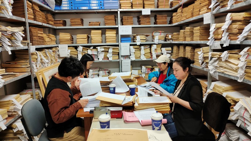 在档案室,宋老师和系主任一起认真检查试卷、毕业设计等教学档案,宋老师仔细地列出问题清单,严格把关,并向年轻老师耐心讲解需要改进之处。在宋老师的指导和帮助下,学院老师阅卷、成绩登记、归档工作等做得越来越好。