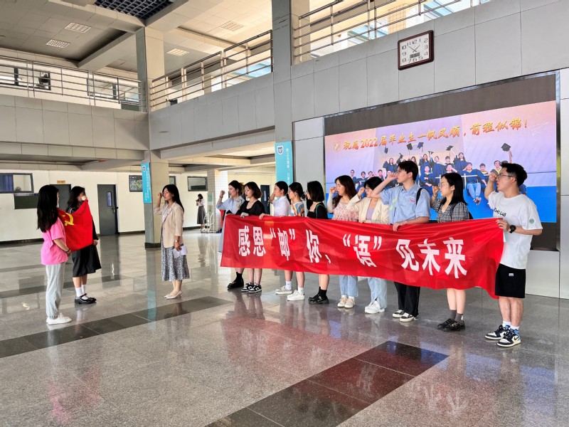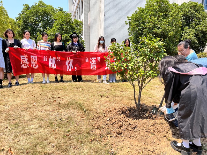 6月15日,在2022届毕业生离校之际,外国语学院开展了毕业生党员离校前“最后一课”暨毕业生捐树仪式,活动以“‘邮’你同行,‘语’见未来”为主题。院党委书记陈晓波、院关工委副主任何秋莎、院党委副书记高艳丽、毕业班辅导员蒋丽婷及2022届毕业生代表参与活动。活动由毕业班辅导员蒋丽婷主持。