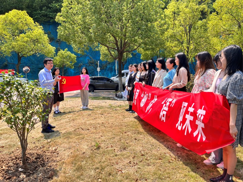 院关工委副主任何秋莎老师与学生代表共种一棵“茶花”树,她指出,当今世界正经历百年未有之大变局,党员同志们需树立“终身学习,不断进步”的远大目标,在这个充满无限希望的时代,拼出人生无限可能,祝福全体同学像山茶花一样,四季葱郁、初心不改。随后全体党员面向党旗,高举右拳,在高艳丽副书记的领誓下重温入党誓词,重忆入党初心。