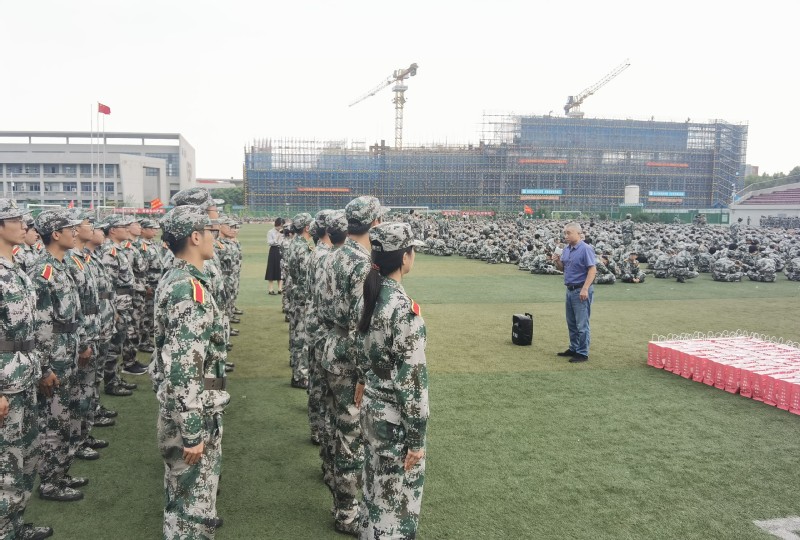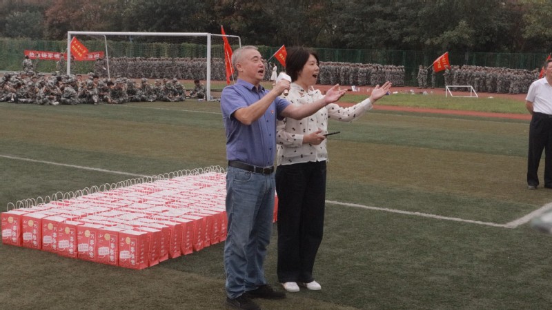 张登银院长发表热情洋溢的讲话,他对新同学们展现出的精神风貌给予高度赞扬,对军训取得的阶段性成果给予充分肯定,希望同学们能将军训中习得的优良作风延袭到大学生活中,以严谨的求学态度与满腔的爱国热情扎实学习,勤奋进取,圆满完成军训任务,开启美好大学生活。储成祥教授和邓艳华书记合唱歌曲《为了谁》,让参训学生备受鼓舞,提振了士气。在全体老师、同学的合唱中,军训的疲惫感顿然全无。