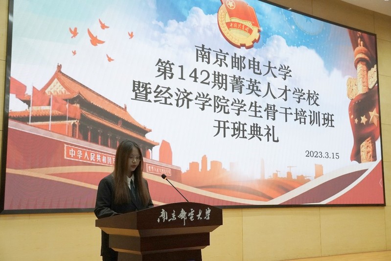 3月15日,南京邮电大学第一百四十二期大学生菁英人才学校暨经济学院学生骨干培训班开班典礼于仙林校区图书馆四楼报告厅顺利举行。校关工委副主任、经济学院关工委副主任储成祥教授应邀出席并作开班致辞。学院党委书记董军老师,分团委书记尤波老师和菁英班全体113名学员参加。