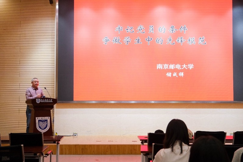 5月9日中午,校关工委副主任、经济学院关工委副主任储成祥教授在仙林校区计算机学科楼中兴报告厅为南京邮电大学第497期暨经济学院第16期入党积极分子党校培训班学员讲授主题为“牢记党员条件,争做学生中的先锋模范”的开班第一课,48名入党积极分子线下参加。