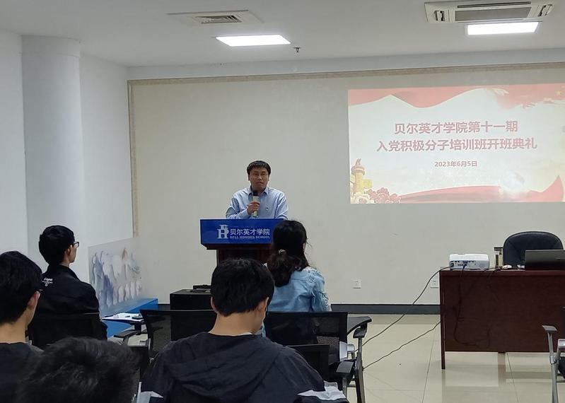 随着开班仪式的结束,贝尔英才学院学生党支部第十一期入党积极分子培训班系列党课正式拉开帷幕。校关工委副主任储成祥教授为同学们开始第一讲:《牢记党员条件,争做学生中的先锋模范》。储成祥教授详细介绍了中国共产党的指导思想,指出党的指导思想是指导我党全部活动的行动指南,剖析了义务与权利的关系,将义务和权利落实到实践中。希望学员们紧紧围绕学习习近平新时代中国特色社会主义思想,做到学以致用,学有所思,学有所悟。