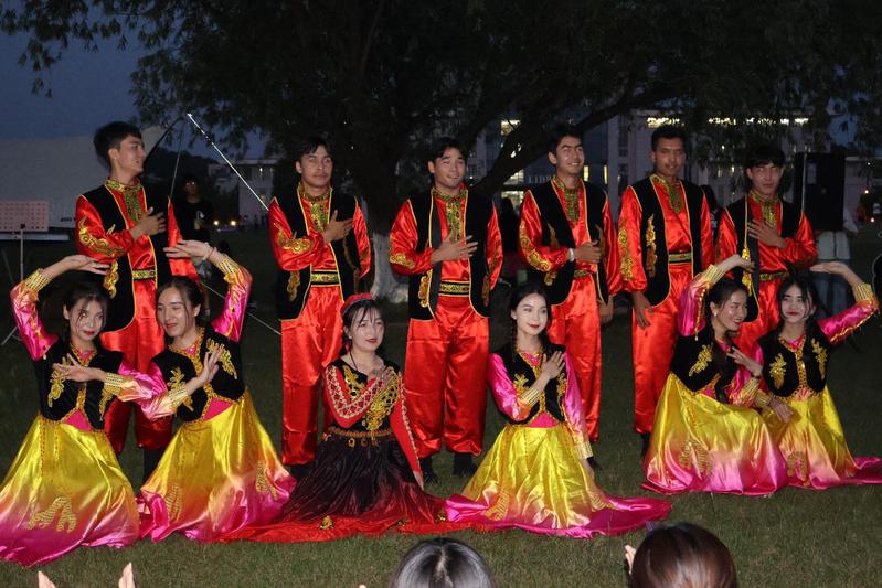 少数民族同学为大家表演了高亢亮丽的民族歌曲、清新动人的舞蹈,展示了极具民族特色的民族服装。夜幕下,一首首耳熟能详的歌曲把各民族师生的情感连到一起,或抒情婉转,或激昂活力,师生们共同徜徉音乐海洋,整场联欢会气氛温馨而热烈。少数民族学生展现的多才多艺的风采和乐观积极的精神风貌,使整场联谊活动洋溢着民族大家庭和谐温暖的氛围。