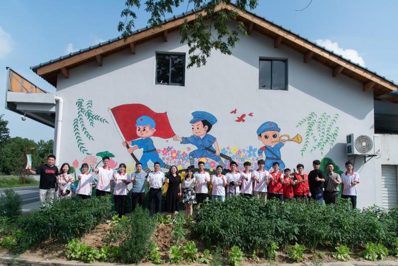 直播结束后,老师们参观了社会实践团队近几天的墙绘成果,并合影留念。