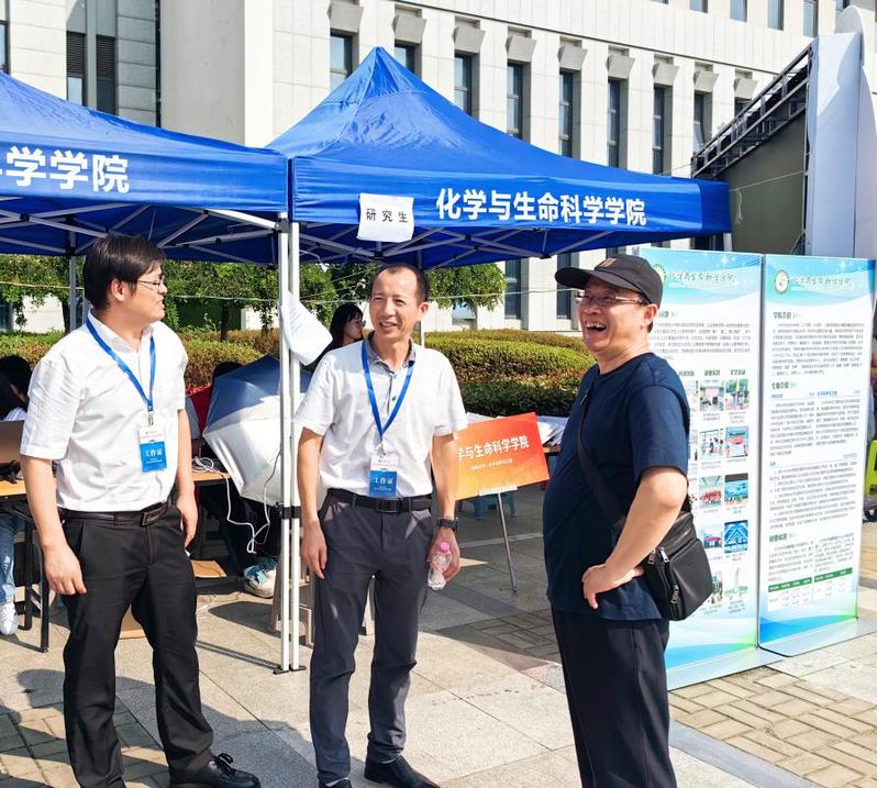 9月8日下午,化学与生命科学学院关工委副主任盛大铨老师来到学院2023级新生报到现场,与学院党总支副书记张建平、副院长苏邵亲切交流,详细了解学院迎新准备情况与报到情况,并对迎新志愿者表达了关心与期望。