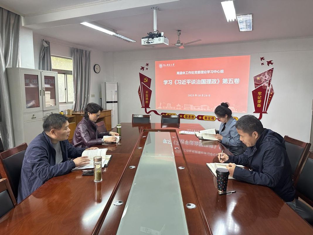 10月20日上午,离退休工作处党委理论学习中心组依据学校党委部署,在三牌楼校区二楼会议室开展了《习近平谈治国理政》第五卷专题学习会,处党委书记陈友民主持会议,中心组成员参与学习。