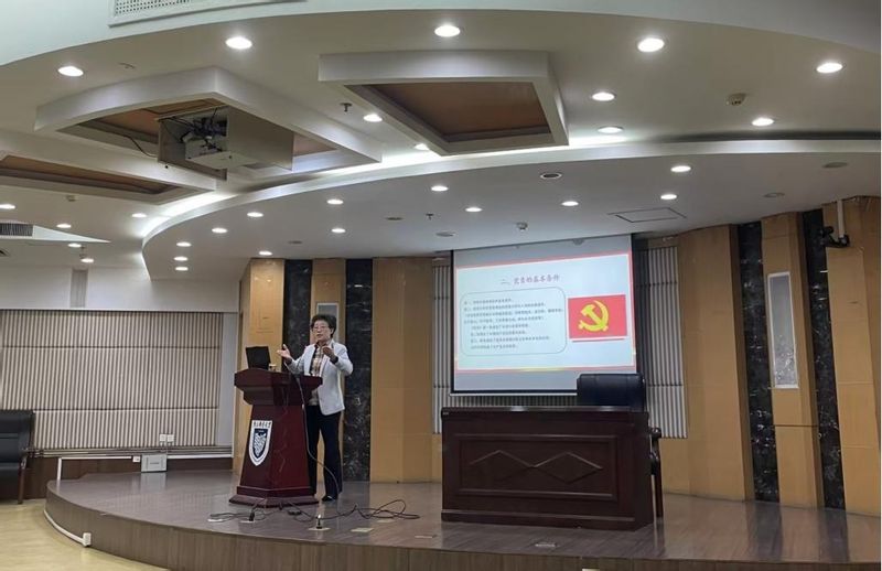 本次党课由校关工委讲师团成员、江苏省优秀党务工作者、院关工委常务副主任朱清教授担任主讲人,以“理论筑基 + 榜样引领”为主线,构建起层次清晰、内涵丰富的教学体系。课程伊始,朱清教授围绕申请入党的四大核心条件展开系统阐释,从年龄与身份的基本门槛,到思想觉悟的进阶标准,再到实际行为的具体规范,每一项内容均结合《中国共产党章程》原文进行深度解读,着重强调“全心全意为人民服务”是贯穿党员条件始终的根本宗旨,为学员筑牢思想根基。