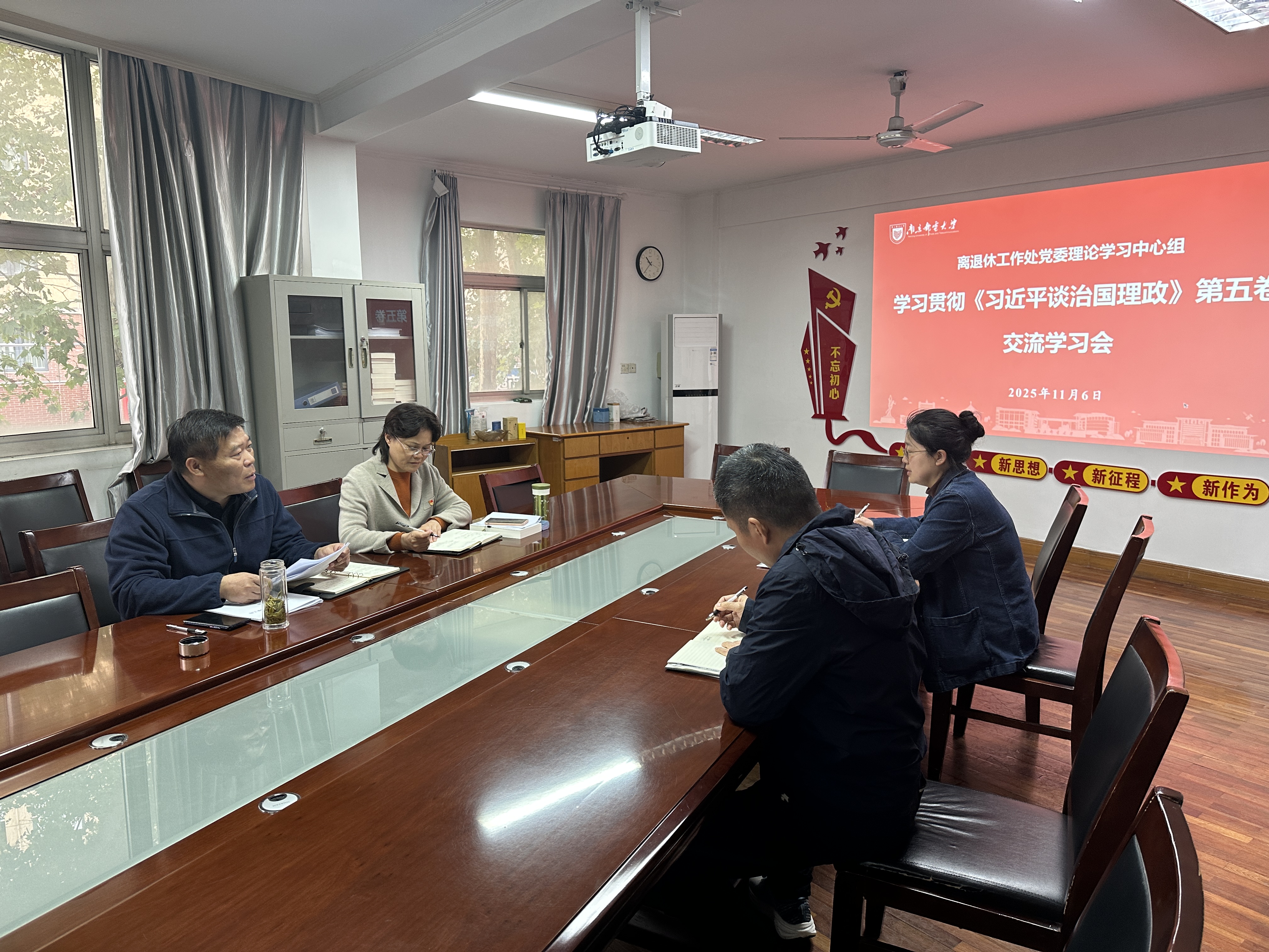 11月6日上午,离退休工作处党委理论学习中心组在三牌楼校区二楼会议室开展了《习近平谈治国理政》(第五卷)第三次集体学习,中心组组长、处党委书记陈友民主持会议,中心组成员参加学习交流。