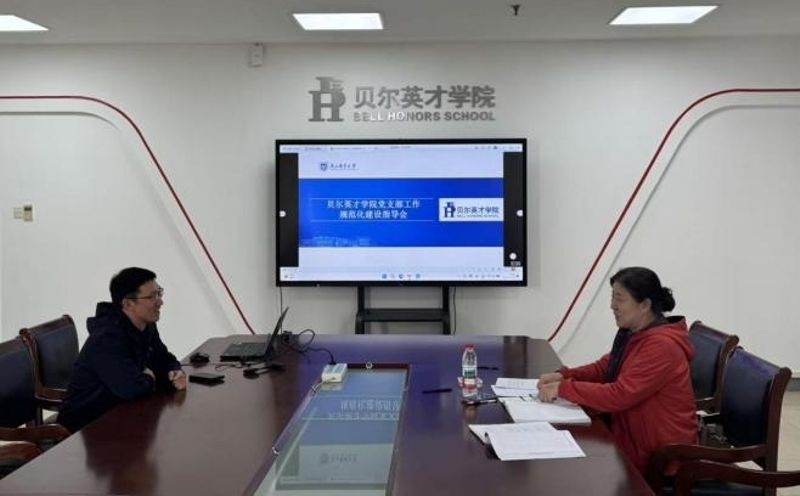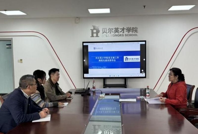 为深入贯彻落实新时代党的建设总要求,持续提升基层党支部标准化规范化建设水平,充分发挥党支部战斗堡垒作用和党员先锋模范作用,11月10日,校关工委倪静虹老师应邀来到贝尔英才学院,为学院党支部工作规范化建设开展专项指导。贝尔英才学院党委书记毛建平、教工党支部书记贺超凯、学工党支部书记卢亚男及学院组织员徐萌参加了本次指导交流会。