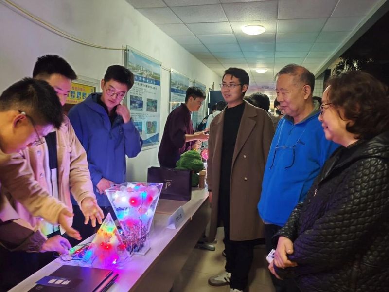 活动现场气氛热烈,创意频出。展出的作品兼具科技感与艺术性,从智能控制到环境感知,从无线通信到光影互动,充分展现了同学们的奇思妙想与扎实的工程功底。有的作品以光敏电阻控制灯光明暗,模拟自然光照变化,造型灵动,吸引了众多观众驻足观看;有的作品利用灯光与影像的融合,呈现出光与影的奇妙交织,引得现场观众纷纷拍照留念。