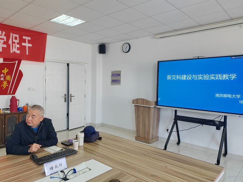 储成祥教授以“新文科建设与实验实践教学”为题,系统阐述了新文科建设的时代背景与战略意义,结合南京邮电大学在新文科领域的创新探索,深入剖析了当前实验实践教学面临的重点、难点问题,强调要推动跨学科融合、强化数字赋能、完善实践教学体系。在交流研讨环节,储教授从学校本科教学整体规划出发,结合其他学院经验,就优化实践教学资源配置、完善校企合作育人机制、强化教学质量管理等方面给出了具体建议。