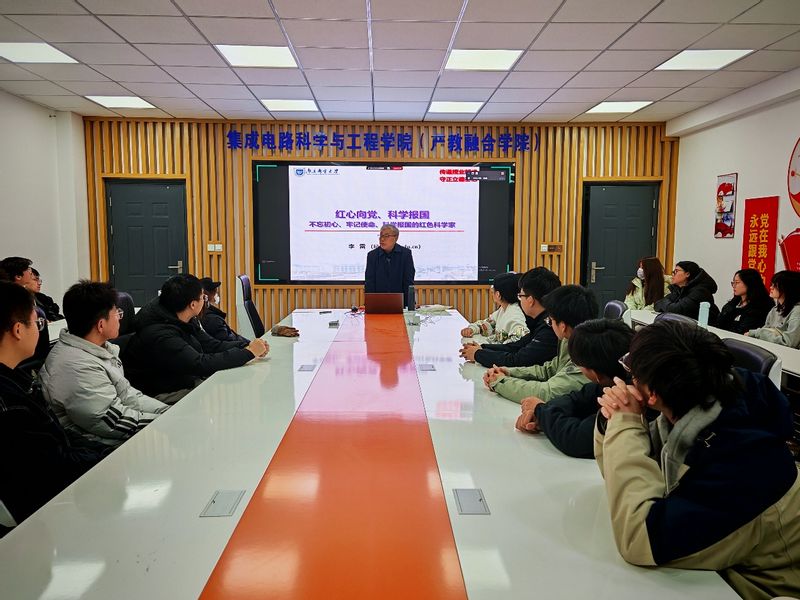 11月20日晚,李雷教授应邀为集成电路科学与工程学院(产教融合学院)第6期入党积极分子讲授《红心向党,科学报国——不忘初心、牢记使命、科学报国的红色科学家》专题课程。66名学员参加培训。