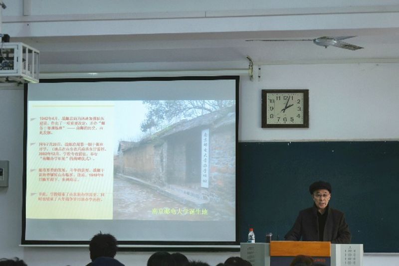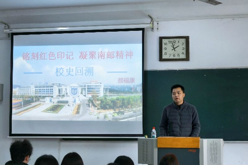 颜老师以“四月始源”开篇,并从“红色印记”“史久源悠”“邮电情结”“援手同门”“百岁寿星”“师者如兰”“邮子风采”等篇章,从不同角度展现了南京邮电大学的办学历史和光辉历程,重点讲解了红色印记、革命传统、邮电情结、育人风采、南邮精神等方面。