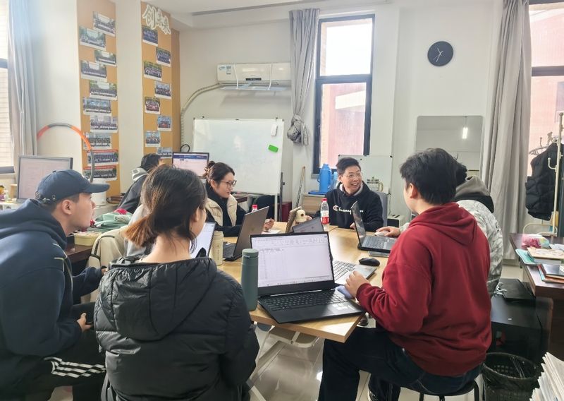 参赛同学介绍了自己的参赛项目。刘峰教授对竞赛作品进行全面细致的评析指导,认真解答了参赛学生的疑惑和难题。他充分肯定了学子们的创新热情与探索精神,也针对作品完善方向给出建设性意见,尤其强调科创实践要扎根实际需求,注重成果转化的可行性,引导学子们树立“产学研用”一体化思维。同学们纷纷表示,刘峰教授的指导专业且务实,不仅帮助大家理清了创新思路,更让同学们对科创实践的内涵有了更深刻的理解,深受启发与鼓舞。