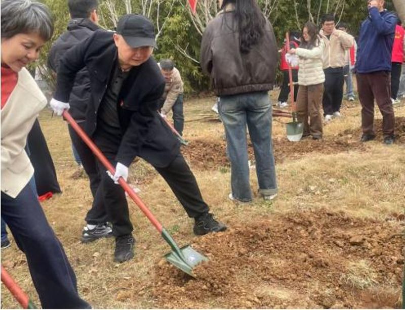 今年恰逢物联网学院建院17周年,现场种植17棵紫玉兰,颇具深意。植树现场,大家并肩协作,挥锹铲土、扶苗正株、提水浇灌,每一个步骤都一丝不苟。“东风吹过玉兰花,新生希望在枝桠”。“先锋林”的“新绿”,是生机,更是希望。
