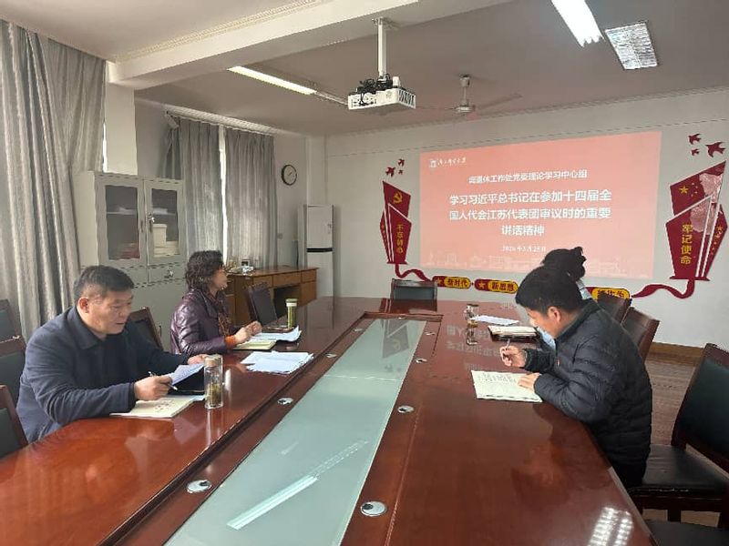 3月25日上午,离退休工作处党委理论学习中心组召开集体学习会,专题学习习近平总书记在参加江苏代表团审议时的重要讲话精神。会议由处党委书记、理论学习中心组组长陈友民主持,中心组全体成员参会。