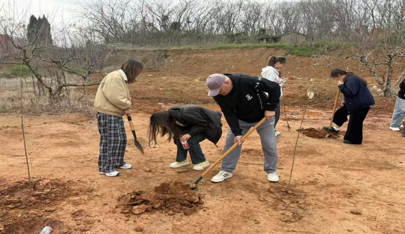 同学们在工作人员的引导下,迅速投入植树行动。大家分工协作,挥锹挖坑、扶苗培土。满怀热情,栽下了希望的树苗,不仅体现了同学们对未来的憧憬与期待,也提升了团结协作的意识,增进了彼此的了解,进一步加深了同学们对践行“绿水青山就是金山银山”生态文明理念的理解。